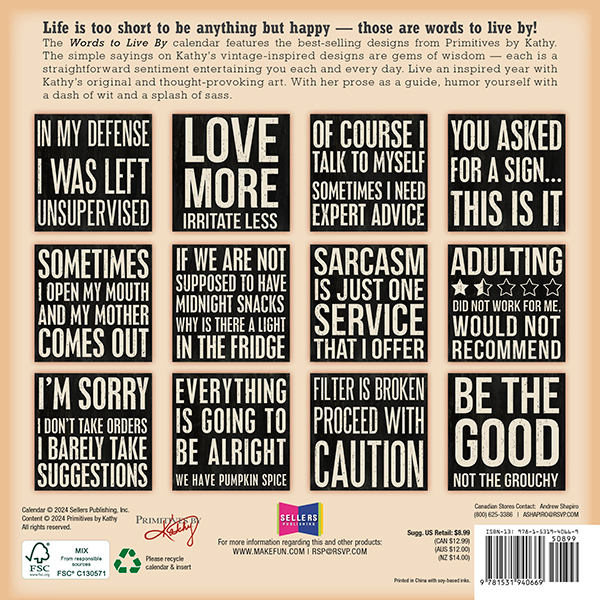 Words to Live By 2025 Wall Calendar , The simple sayings are gems of wisdom, each a straightforward sentiment encouraging you to live every day to.